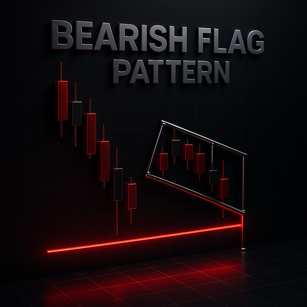 Bearish Flag Pattern adalah pola kelanjutan tren turun (continuation) yang terdiri dari tiang (flagpole) penurunan tajam, konsolidasi berbentuk kanal kecil yang miring ke atas/sideways (bendera), lalu breakdown menembus support untuk melanjutkan penurunan. Pola ini populer karena mudah diidentifikasi, memiliki aturan ukur target yang jelas, dan berguna untuk rencana entry–SL–TP.